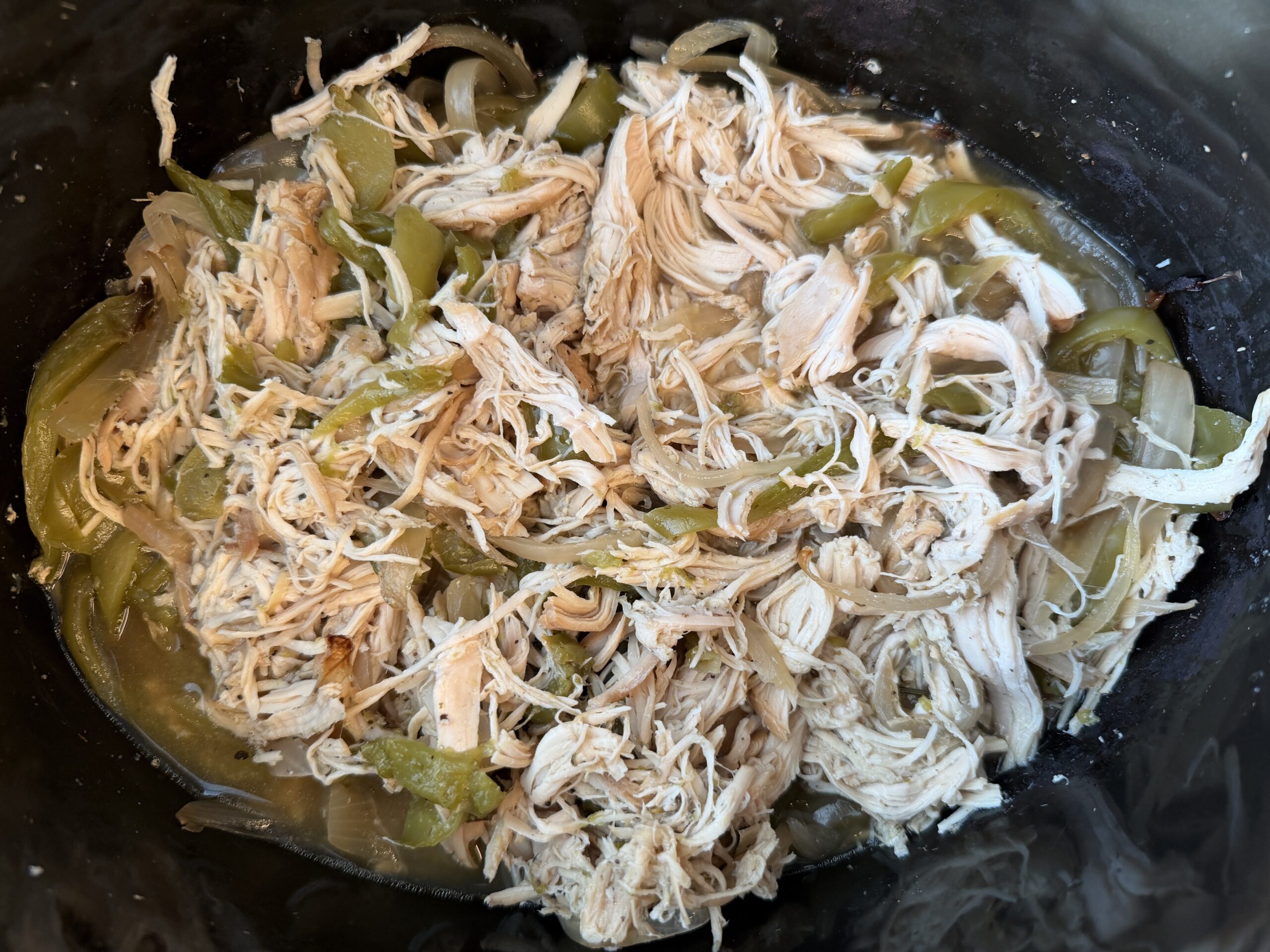 - Once fully cooked, use forks to pull apart and shred the chicken.