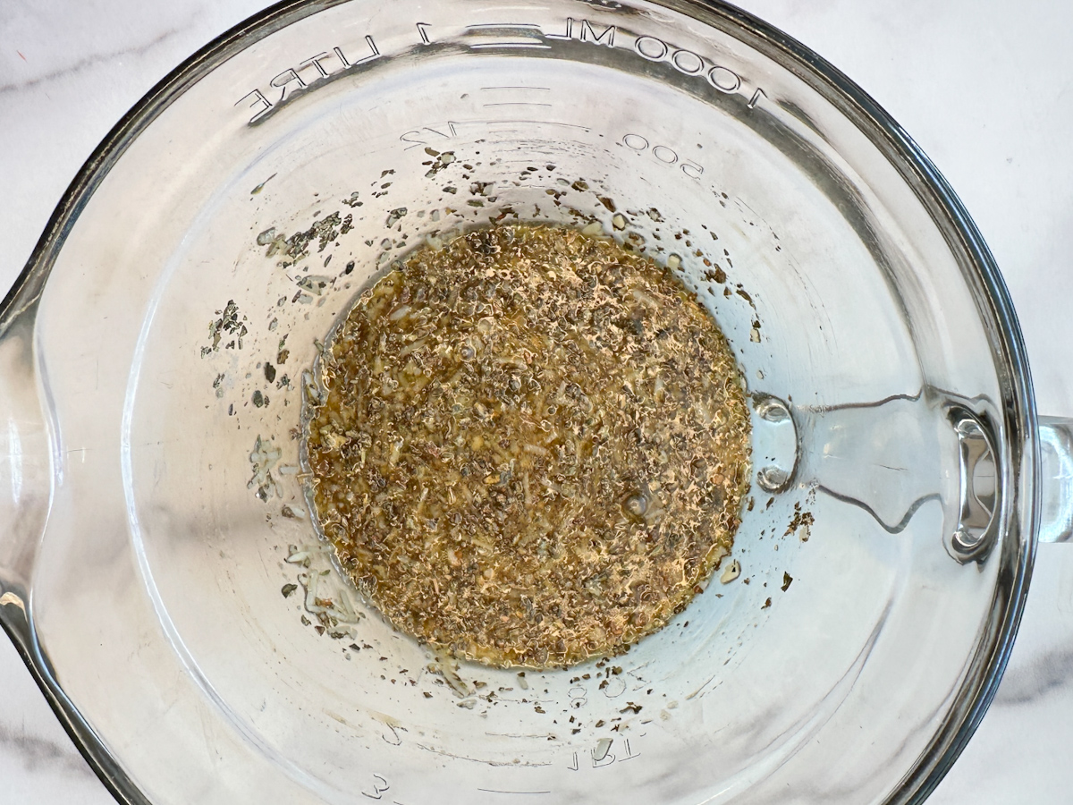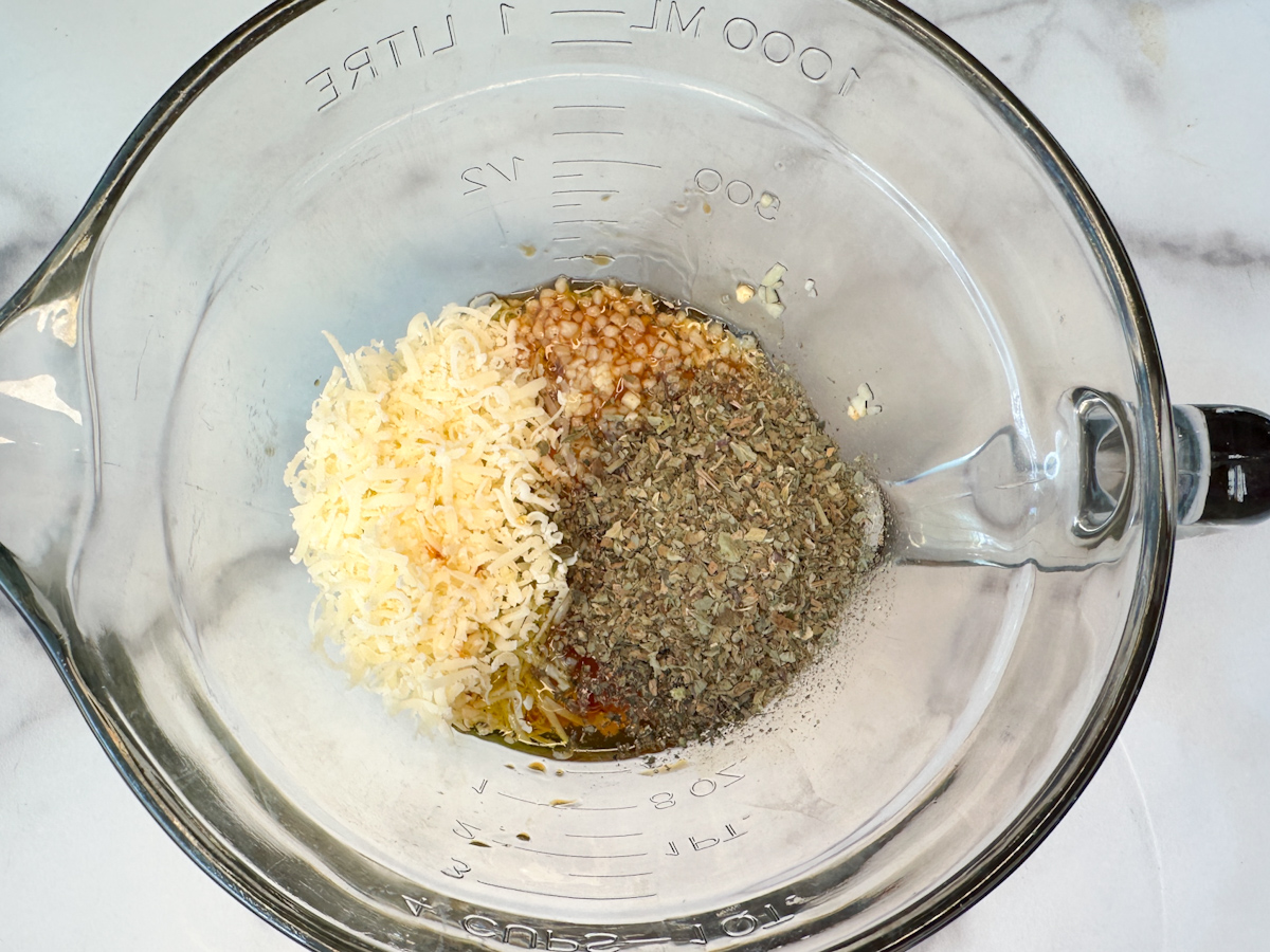 • In a small mixing bowl, combine the grated Parmesan, honey, soy sauce, dried basil, minced garlic, and olive oil. Stir well until fully blended.