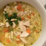 Take the chicken out of the pot and cut it up, then add it back in. Add the lemon juice, parsley, and season the soup with salt & pepper as needed. Serve immediately.